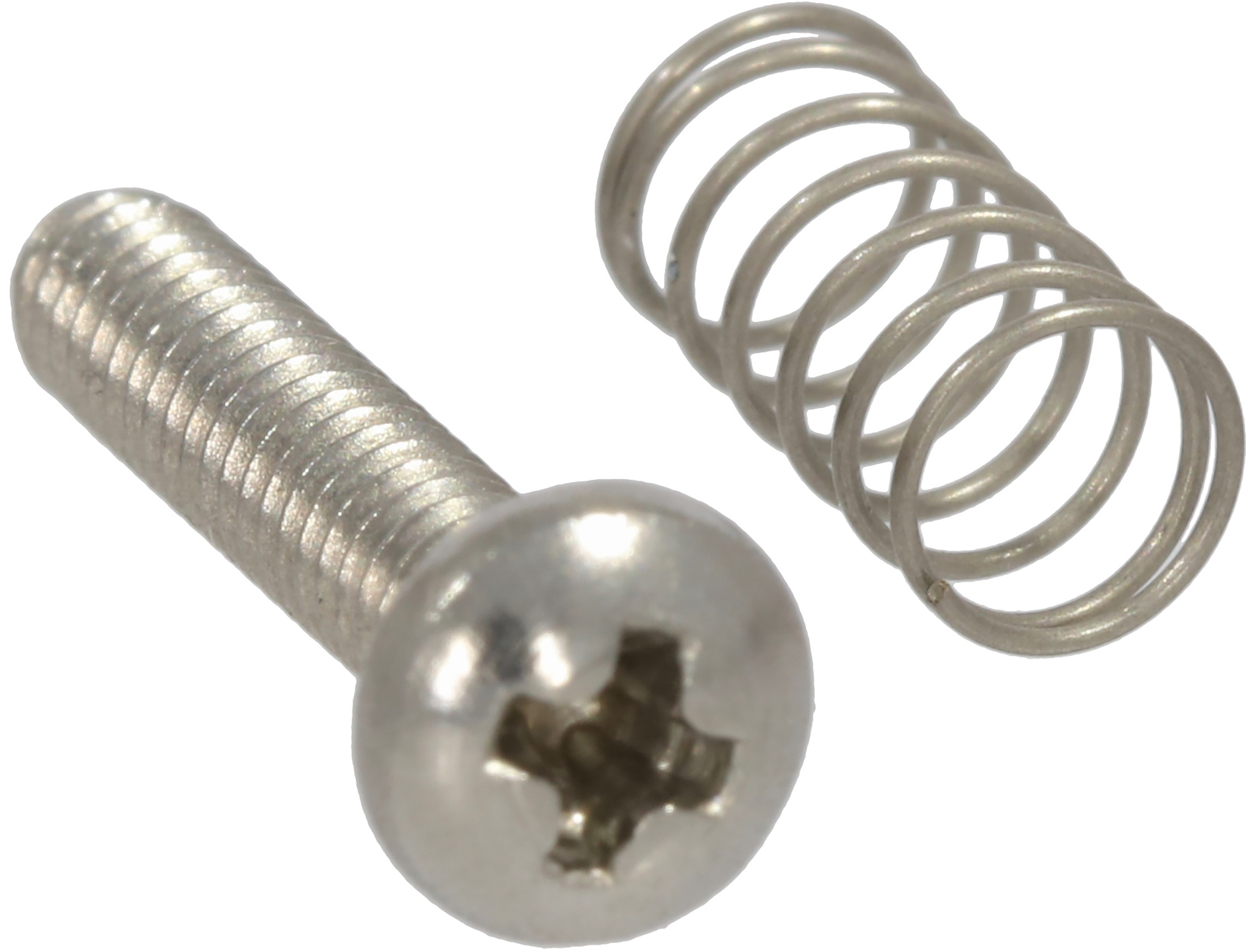 Guitar bridge length screws. Inch thread. Stainless steel. Includes springs. Set of 6 pieces. Length: 16mm.
