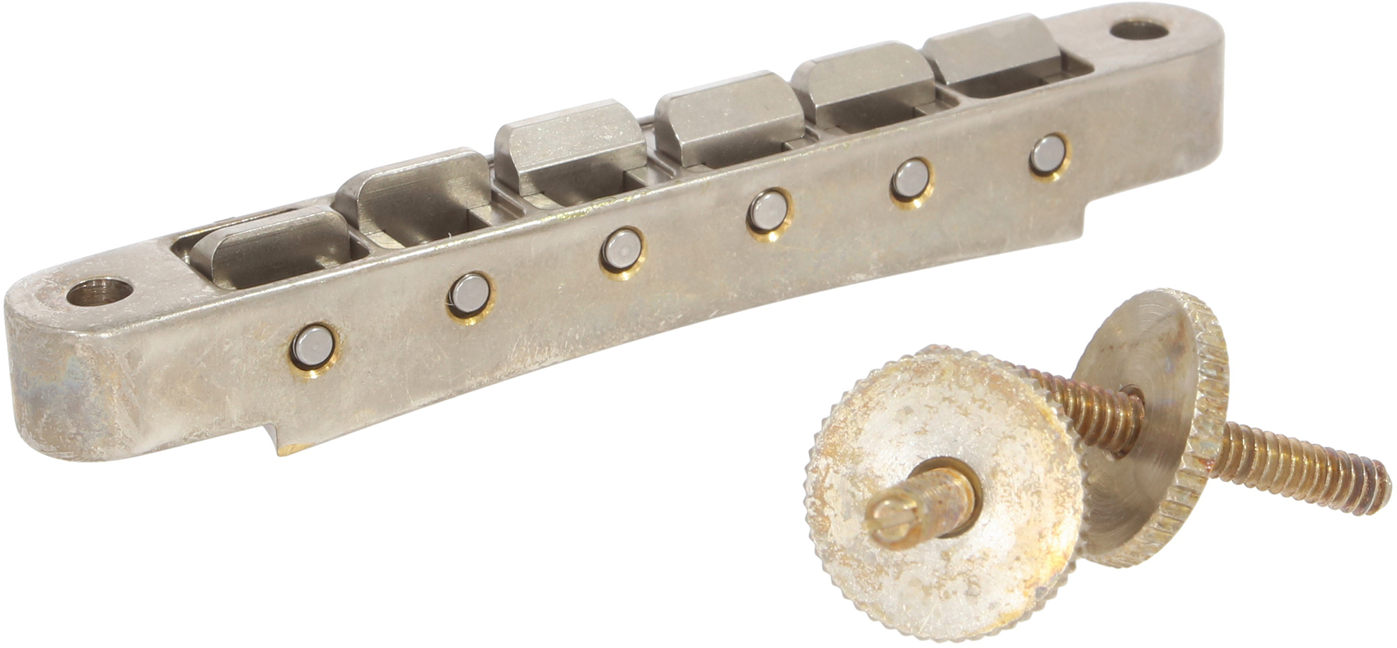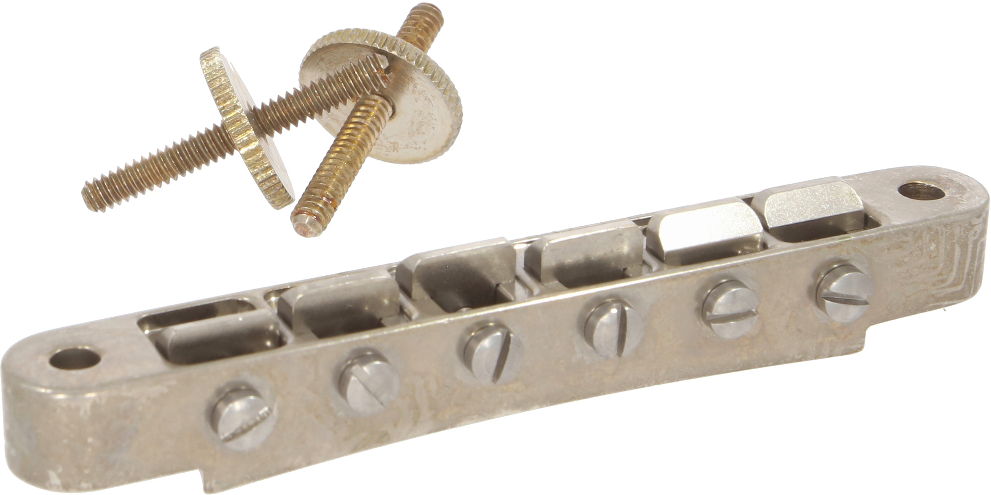 Classic ABR for LP-Reissues/Custom etc. String spacing 52mm, bolt spacing 73,81mm, UNC 6-32 bolts, 12 inch radius, milled from solid Bell Brass. Nickel. Nickel Aged.