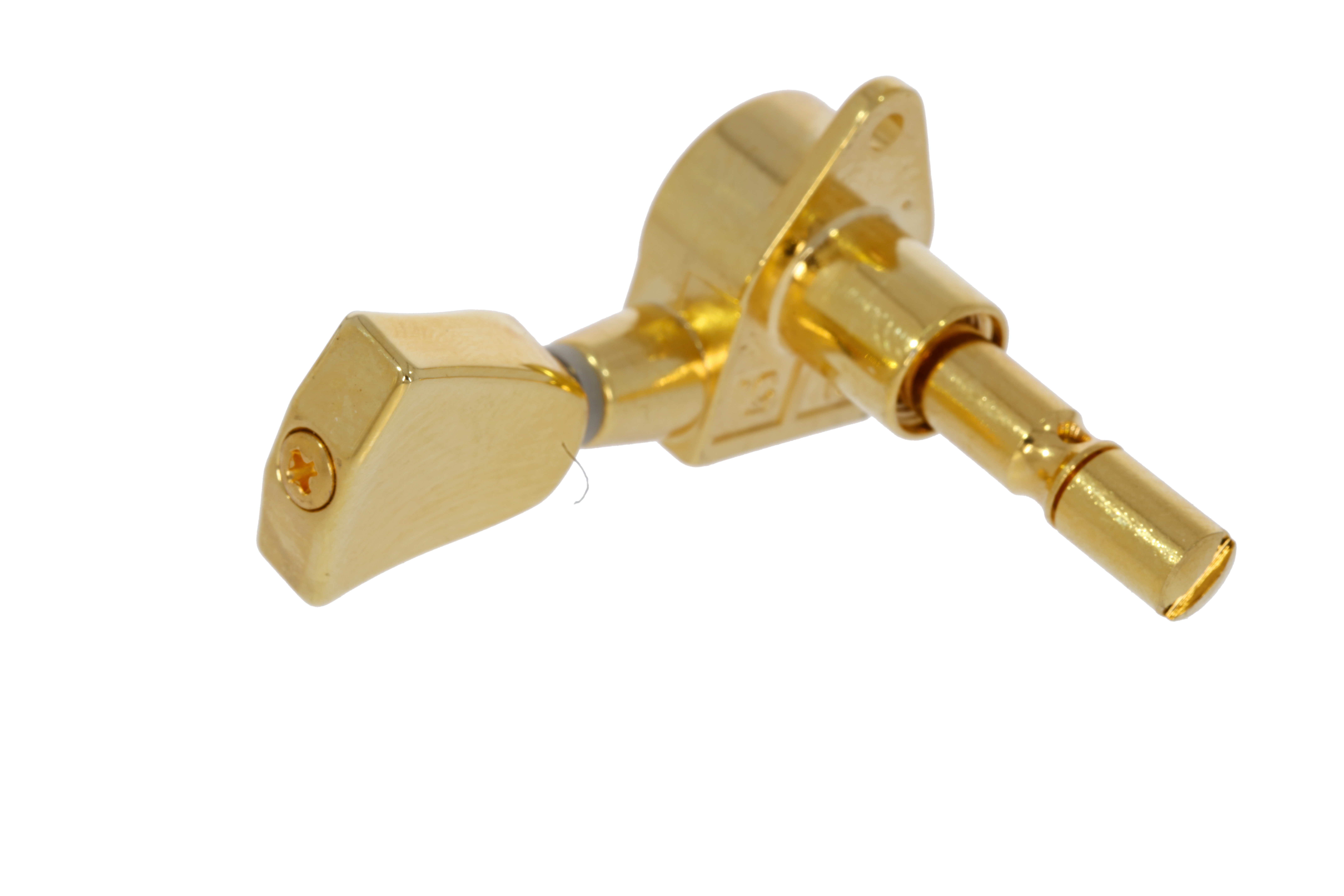 A simple locking machine of highest quality! The slotted locking screw is tighened by a coin and presses on a little steel ball, which tightens the string softly. Compared with other lock tuners this machine head keeps its general function and also works without the locking mechanism very best! Drill hole 10mm. Gear ratio 1:18.