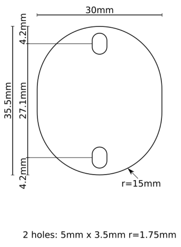 Steel plate for covering unused socket holes on modified chassis. These covers provide a safe solution for modifying any chassis. These covers use elongated mounting holes to fit a variety of socket hole sizes. 9-pin (noval) socket cover. 5x3,5mm mounting holes. 27,1mm center to center.