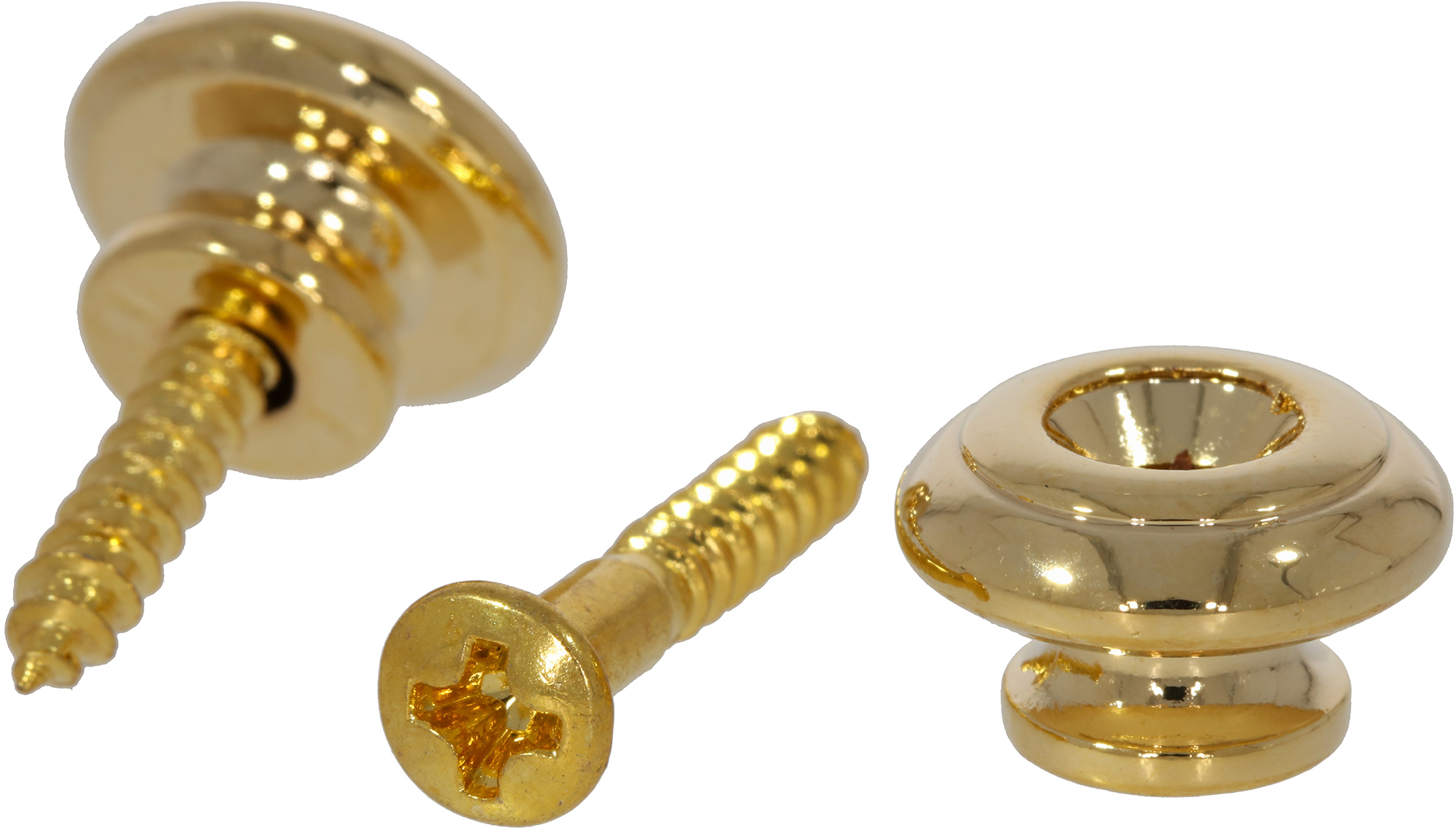 Toronzo strap button, gold. Dome-shape. Diameter: 15mm. Set includes two strap buttons. Includes screws.