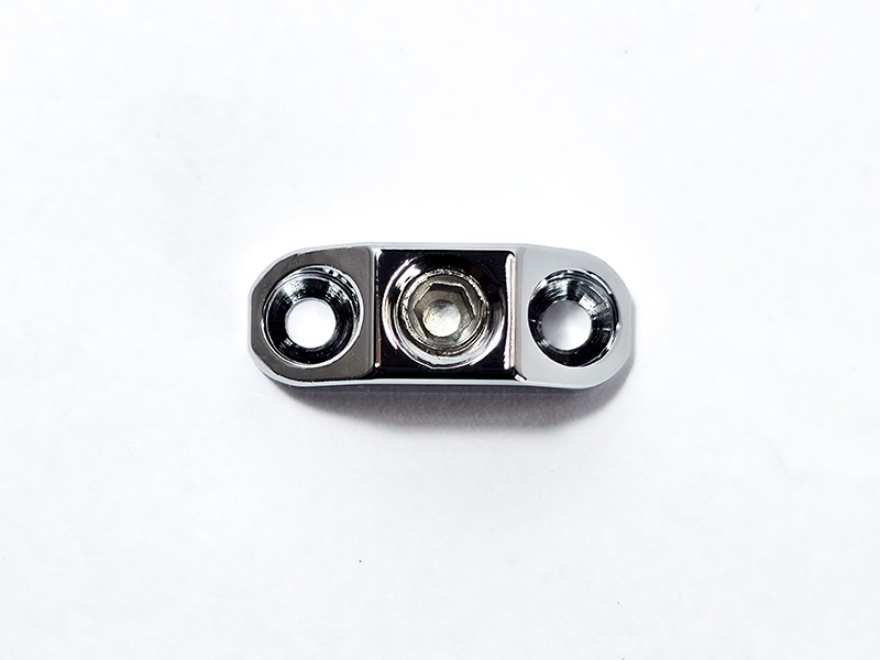 The stylish ABM Single Headpiece 7010c for guitar impresses with its compact design and is universally applicable. It can easily be mounted on a shoulder behind the saddle. The neck geometry does not have to be considered and your guitar can simply be fitted with the ABM 7010b as long as a piece of head plate is available (bolt on). Due to the narrow width of only 7mm, the headpieces can be mounted side by side. If a narrower string spacing is desired, the head pieces can be offset. Tonally, it provides a perfect sound transmission to the body and back. It is made of Bell Brass. Chrome finish.