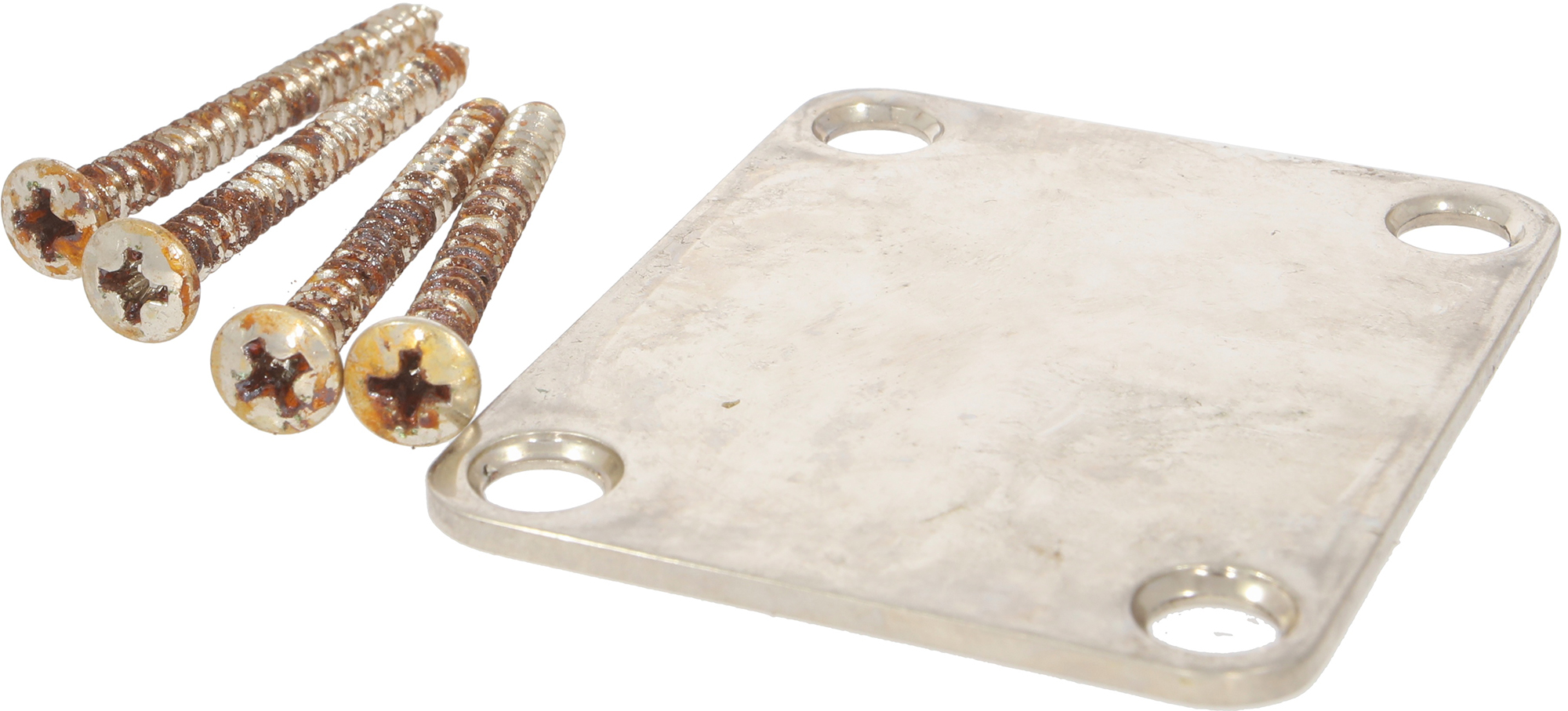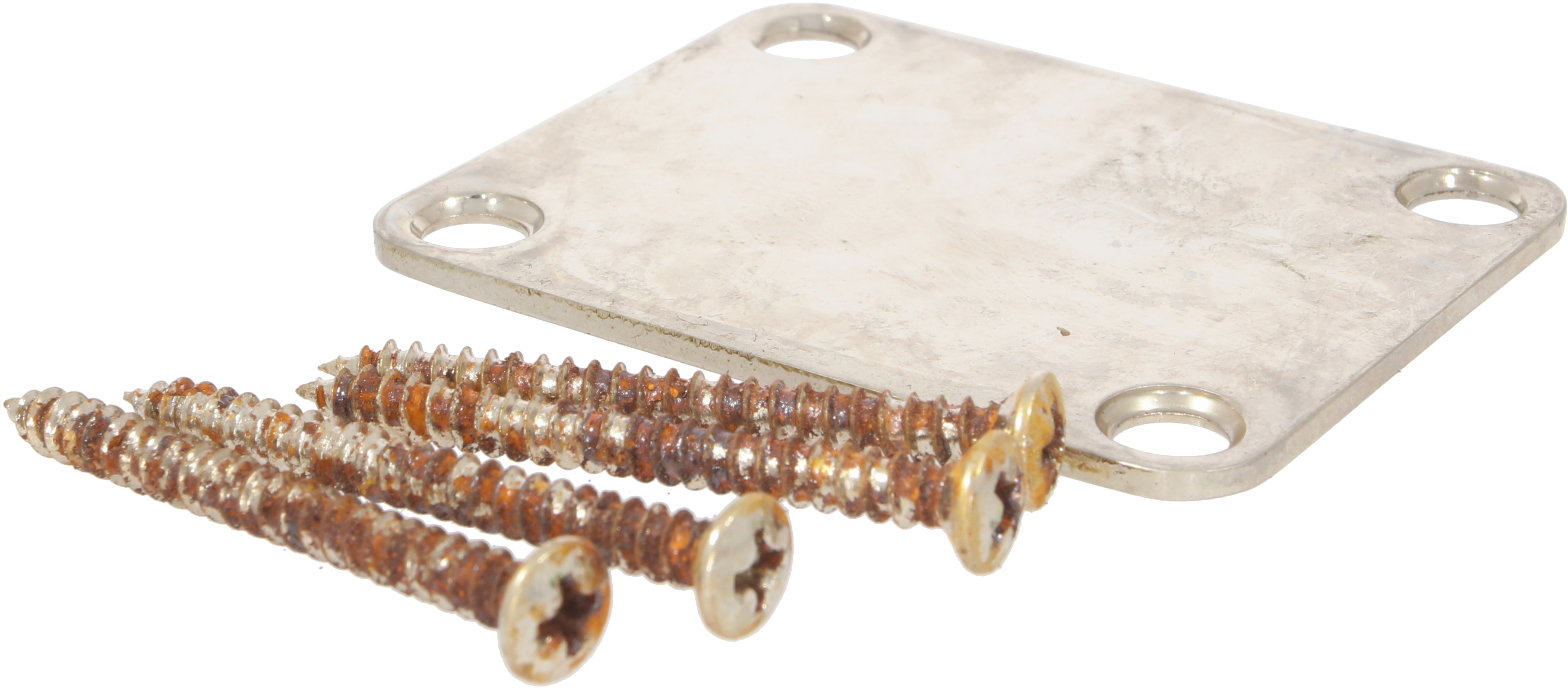Aged Strat-style 1960s neck plate. 4 mounting holes. Thickness: 2mm.