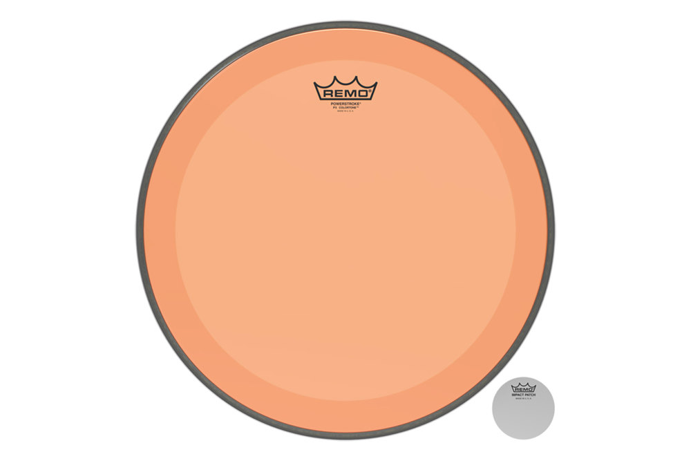 Drum head Colortone Powerstroke 3 clear 24 inch P3-1324-CT-OG, Remo Drumheads. Single-layer 10-mil Mylar film. with an integrated 10-mil damping ring. with impact patch. featuring Remos Skyndeep Imaging technology. color is in the head, no change to the familiar P3 sound. . For more than 50 years, Remo Inc. has been the world's leading manufacturer of drum heads. Each head is designed to meet the diverse needs of various musical styles, including jazz, rock, pop, R&B, hip-hop, and Latin, as well as for the marching, concert, and percussion worlds. Remo heads are the standard on well over 90% of drum sets worldwide. Exclusive distribution for: Germany, Austria, Poland, the Czech Republic, Slovakia, and Spain. Distribution in Romania.. orange