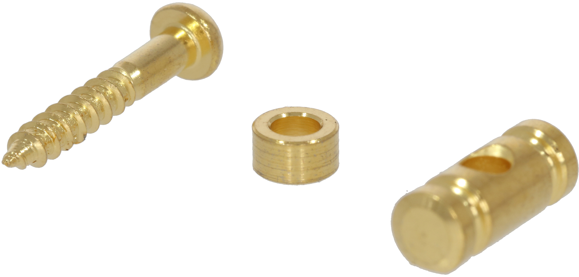 Cylinder style string tree with spacer and screw. Height: 6,5mm. Gold.