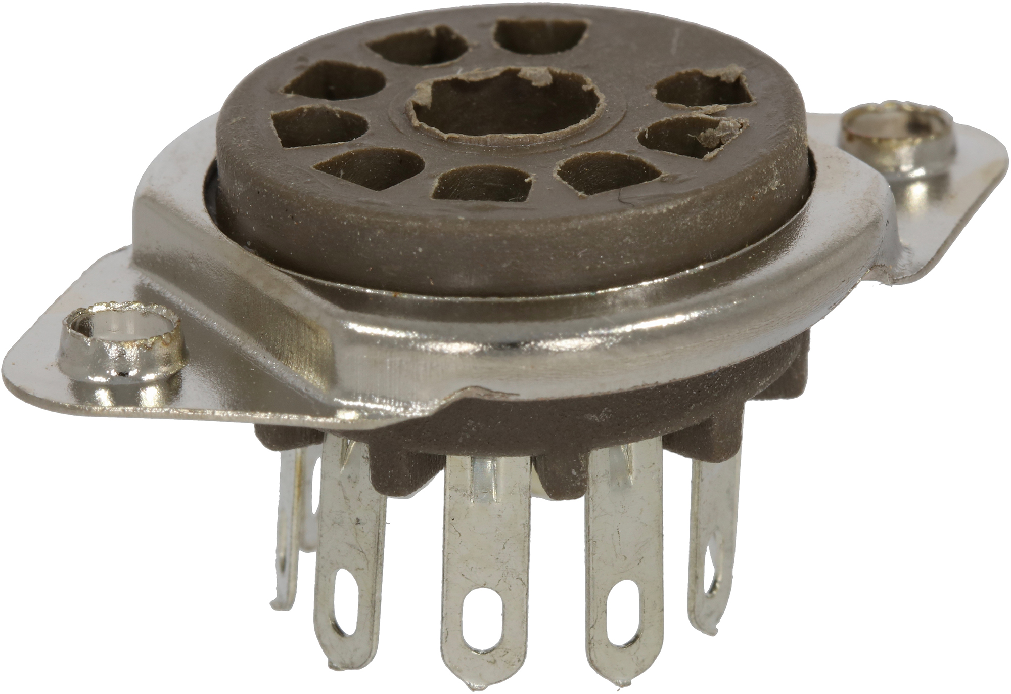 Chassis mount tube socket, noval. Brown plastic. Solder tabs.